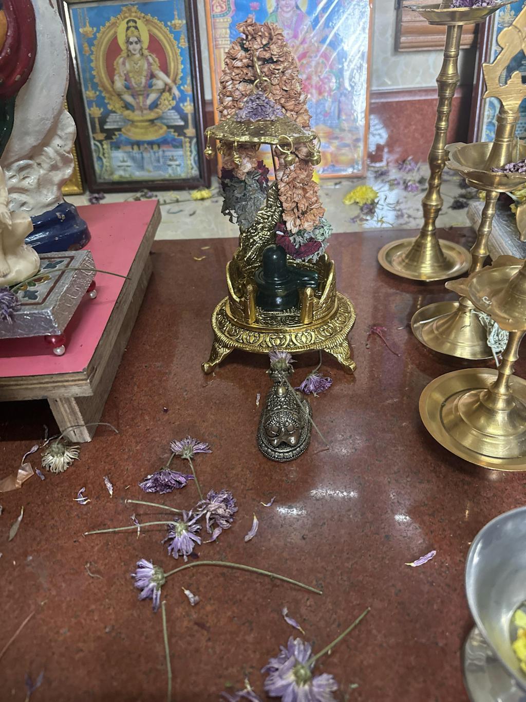 - Puja altar: Ideally on a clean, dedicated altar facing east or north.